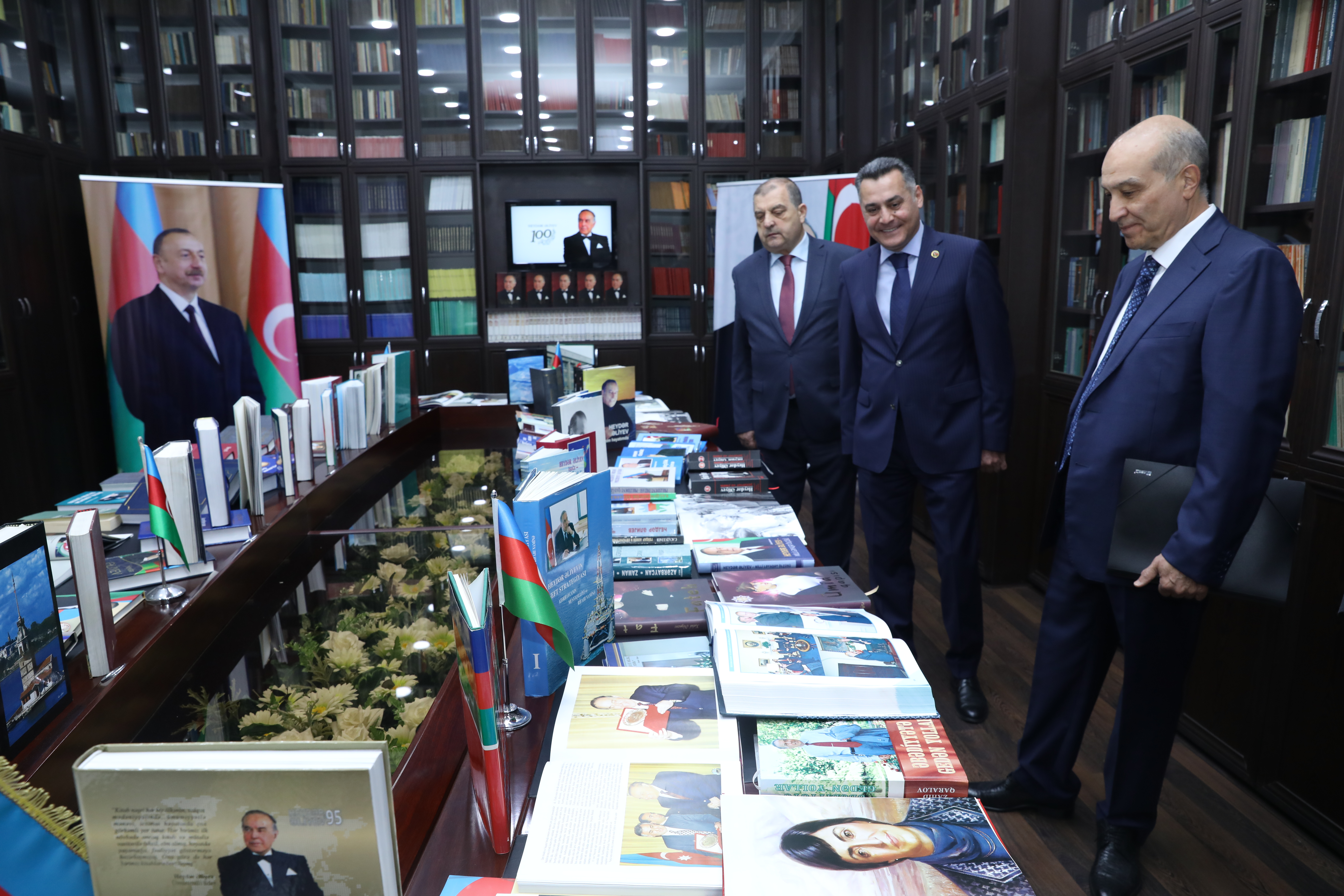Liderin çoxşaxəli fəaliyyətinə dair kitab sərgisi keçirilib. Sərgidə dahi şəxsiyyətin