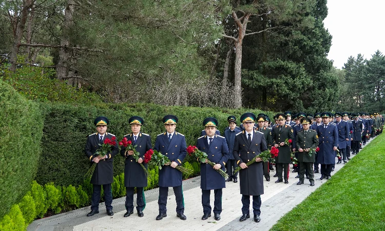 Nazirliyin rəhbər heyəti və kollektivi Fəxri xiyabanda Ulu Öndərin məzarını