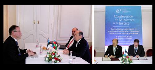Xəbər verdiyimiz kimi, respublikamızın ədliyyə naziri Fikrət Məmmədov Macarıstanın paytaxtı Budapeştdə keçirilən Avropa ədliyyə nazirlərinin konfransında iştirak edib, ölkəmizdə məhkəmə-hüquq sistemində tətbiq olunan innovasiyalar barədə çıxış edib, bu sahədə müsbət təcrübəmizlə bölüşüb. Səfər çərçivəsində həmçinin, konfransda iştirak edən Macarıstan və Türkiyə ədliyyə nazirləri, Estoniyanın nümayəndə heyətinin rəhbəri ilə ikitərəfli görüşlər keçirilib. Macarıstanın ədliyyə naziri Yudit Varqa ilə keçirilmiş görüşdə ölkələrimiz arasında dostluq və səmərəli əməkdaşlıq münasibətlərinin inkişafından məmnunluq ifadə olunub, hüquqi əlaqələrimizin genişləndirilməsində imzalanmış Anlaşma Memorandumunun əhəmiyyəti vurğulanıb. Ədliyyə və məhkəmə sahəsində əməkdaşlığın perspektivlərinə dair faydalı fikir mübadiləsi aparılaraq macarıstanlı nazir ölkəmizin nailiyyətlərinə maraq göstərib, bu sahədə müsbət təcrübəmizlə tanış olmaq barədə niyyətini bildirib. Post-konflikt dövründə görülən işlərlə bağlı məlumat verən Azərbaycanın ədliyyə naziri Vətən müharibəsində Macarıstanın ədalətli münasibətini xüsusi qeyd edərək ölkəmizin beynəlxalq səviyyədə tanınmış sərhədləri çərçivəsində ərazi bütövlüyünə və suverenliyinə, eləcə də azad edilmiş ərazilərimizdə bərpa və mina təmizləmə işlərinə göstərdiyi dəstəyi təqdir edib. Səfər zamanı Türkiyənin ədliyyə naziri Abdulhamit Gül ilə görüş olub. Dost və qardaş ölkələrimiz arasında əlaqələrin müttəfiqlik münasibətlərinə uyğun inkişafının vurğulandığı görüşdə bu əlaqələrin möhkəmləndirilməsində Prezident İlham Əliyevin və Prezident Rəcəb Tayyib Ərdoğanın xüsusi rolu qeyd edilib. Azərbaycanın ədliyyə naziri Vətən müharibəsində Türkiyə Prezidenti başda olmaqla türk xalqının, qardaş ölkənin bütün yüksək rəsmi şəxslərinin, o cümlədən həmkarı Abdulhamit Gülün mənəvi dəstəyini vurğulayıb. Türkiyə Prezidentinin Şuşaya səfəri zamanı Azərbaycan-Türkiyə arasında imzalanmış müttəfiqlik münasibətləri haqqında Şuşa Bəyannaməsinin müstəsna siyasi və tarixi əhəmiyyətə malik olmaqla müxtəlif sahələrdə əməkdaşlıq üçün yeni imkanlar açdığını qeyd edib. Xatırladıb ki, Şuşa Bəyannaməsi rəhbər tutularaq iki ölkənin Ədliyyə akademiyaları arasında imzalanmış Anlaşma Memorandumu ilk sənədlərdən olmaqla əlaqələrimizin dərinləşməsinə xidmət edir. Vətən müharibəsində Böyük Qələbə münasibətilə bir daha təbrikini ifadə edən A.Gül türk dövlətlərinin ədliyyə və məhkəmə sahəsində nailiyyətlərinin dünyada yayılması və təbliğinin əhəmiyyətinə toxunaraq bu məqsədlə Türkdilli Dövlətlərin Əməkdaşlıq Şurası çərçivəsində Ədliyyə nazirliklərinin əməkdaşlığı ilə bağlı niyyətini bildirib. Macarıstana səfər çərçivəsində həmçinin, Azərbaycan və Estoniya Ədliyyə nazirlikləri arasında Əməkdaşlıq haqqında Anlaşma Memorandumu imzalanıb. Ölkə Prezidentinin Sərəncamı ilə verilmiş səlahiyyətə əsasən sənədi ədliyyə naziri Fikrət Məmmədov, Estoniya nümayəndə heyətinin rəhbəri, Ədliyyə Nazirliyinin vitse-kansleri Vilyar Piip imzalayıb. Memorandum məhkəmə və ədliyyə sahəsində əməkdaşlığı, təcrübə mübadiləsini, mediasiya institutunun, e-ədliyyənin və e-məhkəmənin təşviqini, ədliyyə işçilərinin və hakimlərin təlimini və digər sahələrdə birgə tədbirləri nəzərdə tutur. Tərəflər imzalanan sənədin qarşılıqlı fəaliyyətə mühüm töhfə verəcəyi, hüquqi sahədə təcrübə mübadiləsinin hər iki tərəf üçün faydalı olacağını bildiriblər. Keçirilən görüşlərdə Vətən müharibəsində qazanılmış Böyük Qələbə nəticəsində azad edilmiş torpaqlarımızda aparılan nəhəng bərpa-quruculuq işlərindən bəhs olunub, həmsöhbətlərin diqqəti xüsusilə yenidənqurma prosesinə ciddi mane törədən və mülki insanlar arasında qurbanlara səbəb olan Ermənistan tərəfindən işğal dövründə ərazilərimizin minalanması faktına cəlb edilib. Tədbirlərdə Azərbaycanın Macarıstandakı səfiri Tahir Tağızadə iştirak edib.