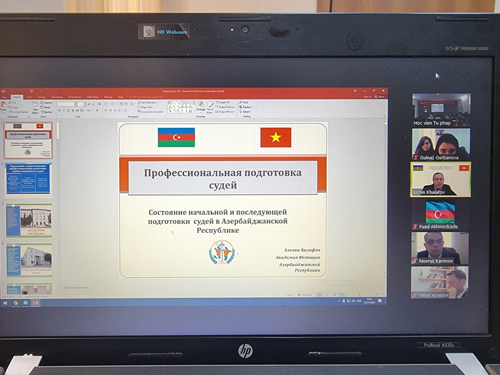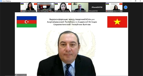 Dekabrın 17-də Azərbaycan Respublikası Ədliyyə Nazirliyinin Ədliyyə Akademiyası ilə Vyetnam Ədliyyə Akademiyası arasında “Məhkəmə üzvlərinin təlimində informasiya texnologiyalarının tətbiqinin genişləndirilməsi ilə bağlı bilik və təcrübə mübadiləsi” mövzusunda videokonfrans formatında görüş keçirilib. Konfransda hüquq sahəsində peşə hazırlığı fəaliyyətində informasiya texnologiyalarının daha geniş tətbiqi üzrə təcrübə mübadiləsi aparılıb. Tədbirdə Vietnam tərəfini Vyetnam Ədliyyə Akademiyasının direktorunun müavini Nguen Min Han, müxtəlif kafedra və fakültələrin ekspert və müəllim heyəti, ümumilikdə 17 nəfər təmsil edib. Azərbaycan tərəfini sözügedən konfransda 17 nəfər - Ədliyyə Akademiyasının rektoru vəzifəsini icra edən Elçin Xələfov və Akademiyanın əməkdaşları, Ədliyyə Nazirliyinin Beynəlxalq Əməkdaşlıq idarəsinin rəis müavini Teymur Məlik-Aslanov və böyük məsləhətçisi Aysel Hacırəhimli, İnformasiya-kommunikasiya texnologiyaları idarəsinin baş məsləhətçisi Fuad Əhmədzadə, Ali Məhkəmənin Elektron məhkəmə məsələləri və informasiya texnologiyarı şöbəsinin müdir müavini Yusif Bayramov və hakimlər təmsil edib. Ədliyyə Nazirliyinin Beynəlxalq Əməkdaşlıq idarəsinin rəis müavini Teymur Məlik-Aslanov görüş iştirakçılarını salamlayıb və qeyd edib ki, həm ikitərəfli formatda, həm də beynəlxalq təşkilatlar, o cümlədən hazırda Azərbaycanın sədrlik etdiyi Qoşulmama Hərəkatı çərçivəsində sıx əməkdaşlıq etdiyi Vyetnam Sosialist Respublikası ilə 2016-cı ilin 8 mart tarixində iki dovlətin Ədliyyə nazirlikləri arasında əməkdaşlığa dair Saziş imzalanıb. Sazişin icrasının təmin edilməsi məqsədilə ədliyyə və məhkəmə sistemlərinin, elektron xidmətlərin tətbiqinin videokonfranslara üstünlük verməklə öyrənilməsi və bu kimi digər konkret tədbirləri nəzərdə tutan “Azərbaycan Respublikası Ədliyyə Nazirliyi və Vyetnam Sosialist Respublikasının Ədliyyə Nazirliyi arasında 2020-2022-ci illər üçün Əməkdaşlıq Proqramı”-nın 1-ci hissəsinin “c)” bəndində məhkəmə işçilərinin təlimi və davamlı tədrisi üzrə Azərbaycan Respublikası Ədliyyə Nazirliyinin Ədliyyə Akademiyası ilə Vyetnam Ədliyyə Akademiyası arasında onlayn videokonfransların təşkili nəzərdə tutulub. Daha sonra tədbirdə Ədliyyə Akademiyasının rektoru vəzifəsini icra edən Elçin Xələfov acılış nitqində Ədliyyə Akademiyasının Elektron Tədris Platformasının əhəmiyyətinə və ölkədə ədliyyə sahəsində, xüsusən də Ədliyyə Akademiyasının fəaliyyətinə dair həyata keçirilən islahatlara dair geniş məlumat verib və müvafiq tanıtıcı təqdimat nümayiş edib. Daha sonra isə Ədliyyə Akademiyasının Tədris şöbəsinin rəisi Mehriban Əfəndizadə və İnformasiya-kommunikasiya texnologiyaları idarəsinin baş məsləhətçisi Fuad Əhmədzadə tanıtıcı təqdimatları nümayiş edərək, Akademiyanın fəaliyyəti, hakimlərin tədrisi və digər sahələrdə müasir texnologiyalardan istifadə edilməsi haqda geniş məlumat veriblər.Görüş zamanı hər iki ölkənin Ədliyyə akademiyalarının fəaliyyəti və tədris tədbirləri haqqında məlumat verilib. Vyetnam Ədliyyə Akademiyasının tədris fəaliyyətində informasiya texnologiyalarının tətbiqinin ümumi qiymətləndirilməsi və eyni zamanda Azərbaycanda hüquq peşəsinin tədrisi fəaliyyətində informasiya texnologiyalarının tətbiqi üzrə təcrübə mübadiləsi aparılıb. Çıxışlardan sonra tərəfləri maraqlandıran suallar ətrafında faydalı fikir mübadiləsi aparılıb və gələcəkdə əməkdaşlığı davam edərək digər aktual məsələlər üzrə bu cür konfransların aparılması məsələsi müzakirə olunub. Vyetnam Ədliyyə Akademiyasının direktorunun müavini Nguen Min Han keçirilmiş videokonfransın böyük marağa səbəb olduğunu, informasiya-kommunikasiya sahəsində azərbaycanlı həmkarlarının nailiyyətlərindən təsirləndiklərini, eyni zamanda yaxın gələcəkdə elektron məhkəmə, elektron icra, elektron notariat və informasiya-kommunikasiya sahəsində ən son nailiyyətlərinin dərindən öyrənilməsi üçün səfər və davamlı videokonfransların təşkil edilməsinin zəruriliyini vurğulayıb.