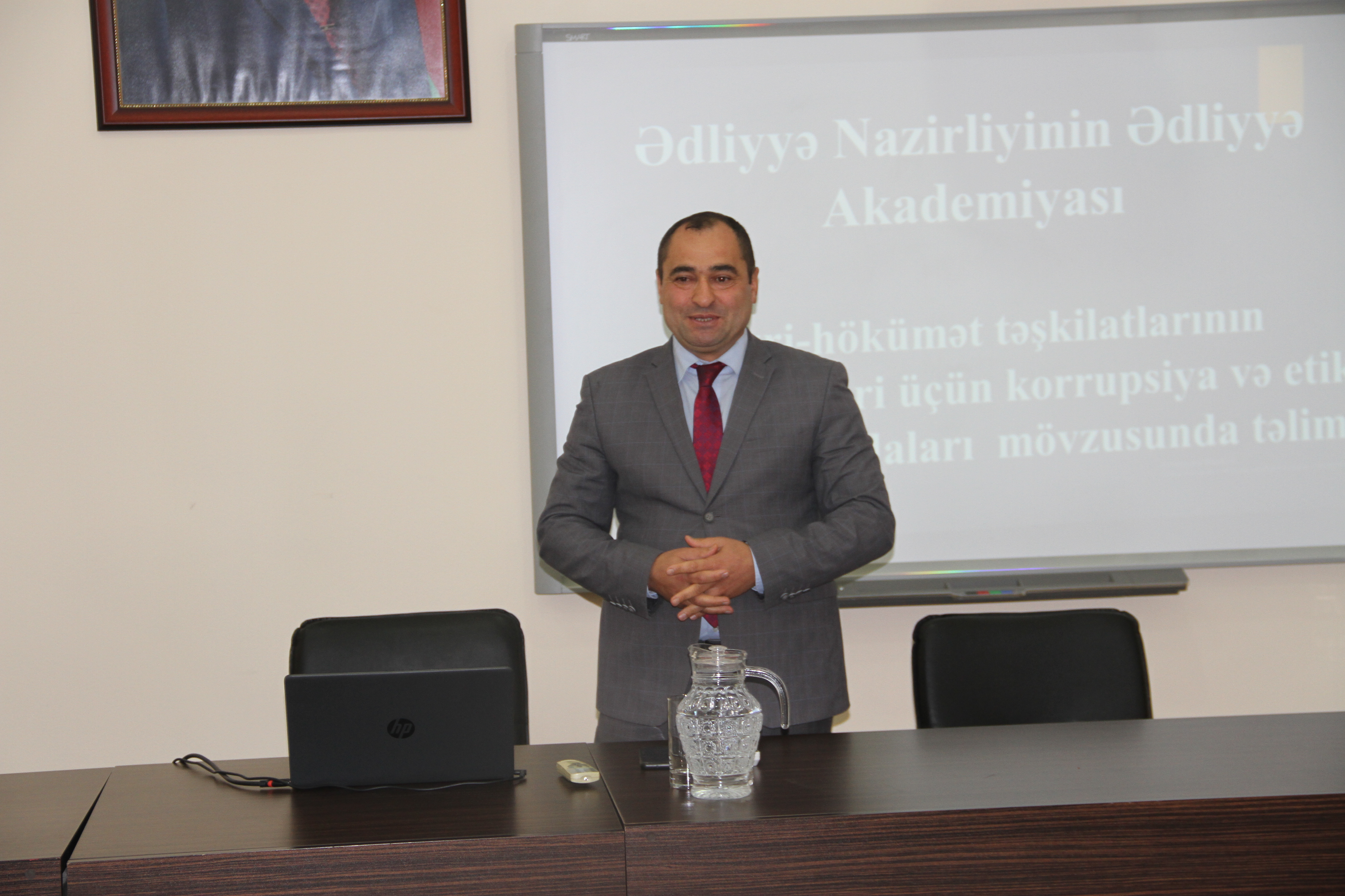 Təlimdə 27 Nəfər Müxtəlif Qeyri-Hökümət Təşkilatı Nümayəndələri Iştirakı Edib. Qeyd Edilən Təlimdə Korrupsiyanın Anlayışı Və Təzahür Formaları, Ona Qarşı Mübarizədə Vətəndaş Cəmiyyəti Inistitutlarının Rolu, Korrupsiyaya Şərait Yaradan Hallar, Qeyri-Hökümət Təşkilatlarının Öz Fəaliyyətlərində Tətbiq Edə Biləcəkləri Insan Hüquq, Azadlıq Və Qanuni Maraqlarına Hörmət, Qanunçuluq, Vicdanlı Davranış Kimi Etik Davranış Prinsiplər Müzakirə Olununmuşdur.