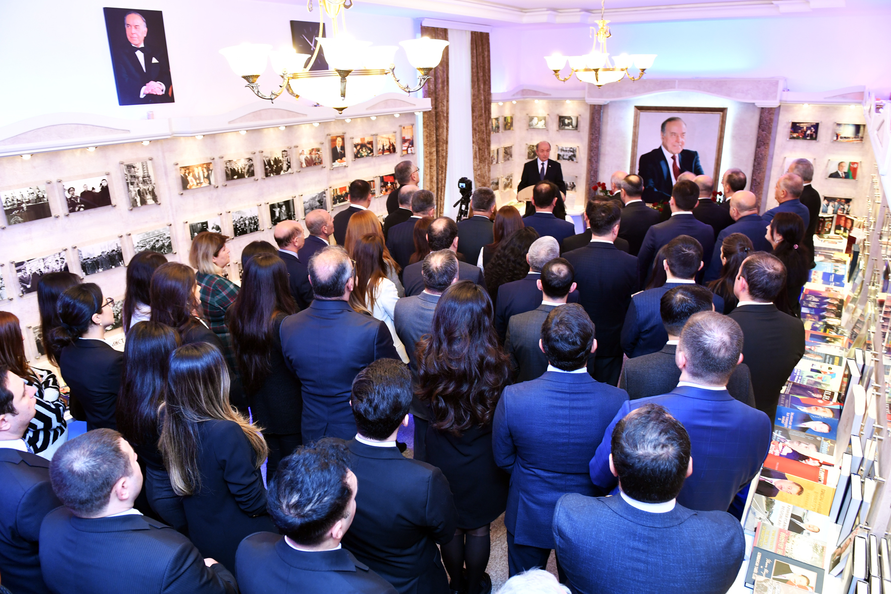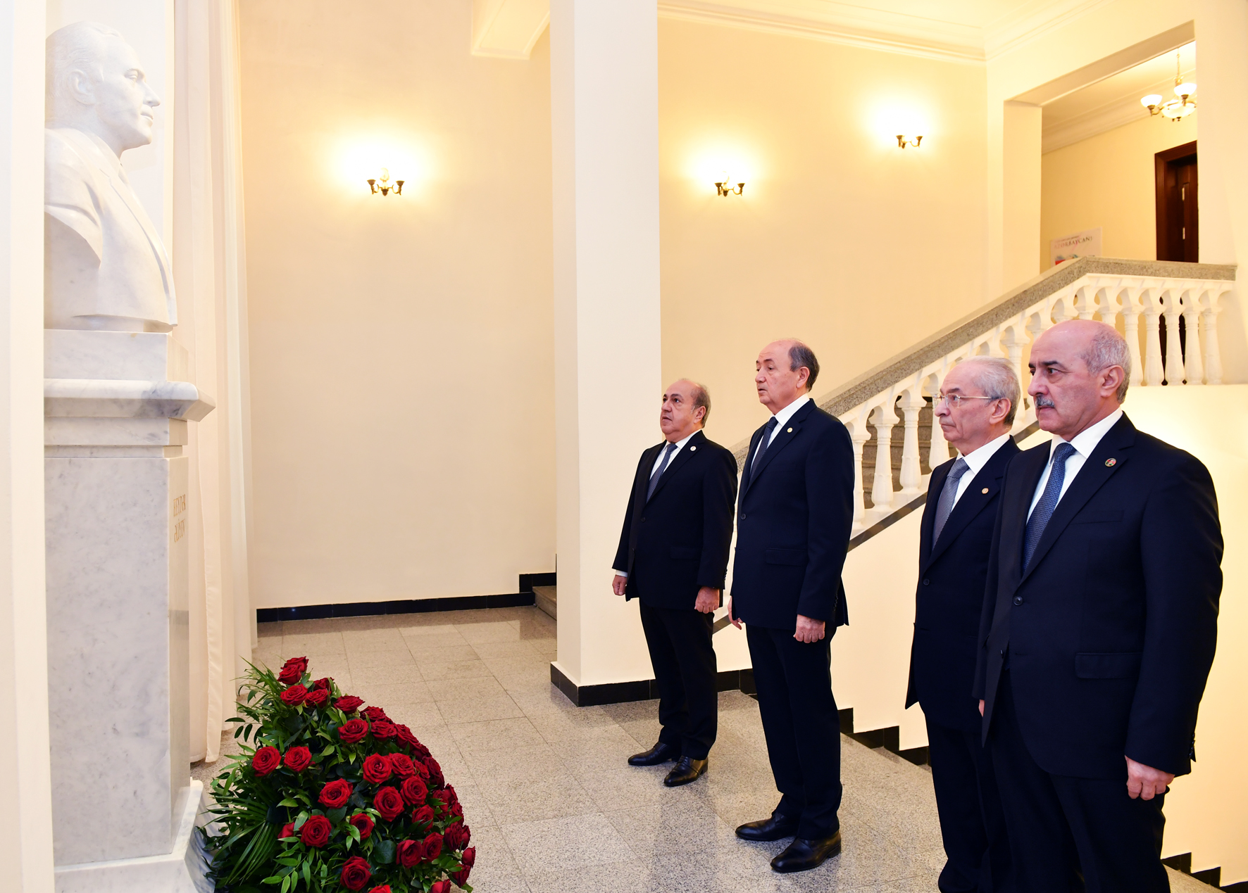 Sonra nazirlikdə əbədiyaşar liderin büstü önünə gül səbəti qoyulub, Heydər Əliyev muzeyində anım tədbiri keçirilib. Əvvəlcə Ulu Öndərin işıqlı xatirəsi bir dəqiqəlik sükutla yad edilib.