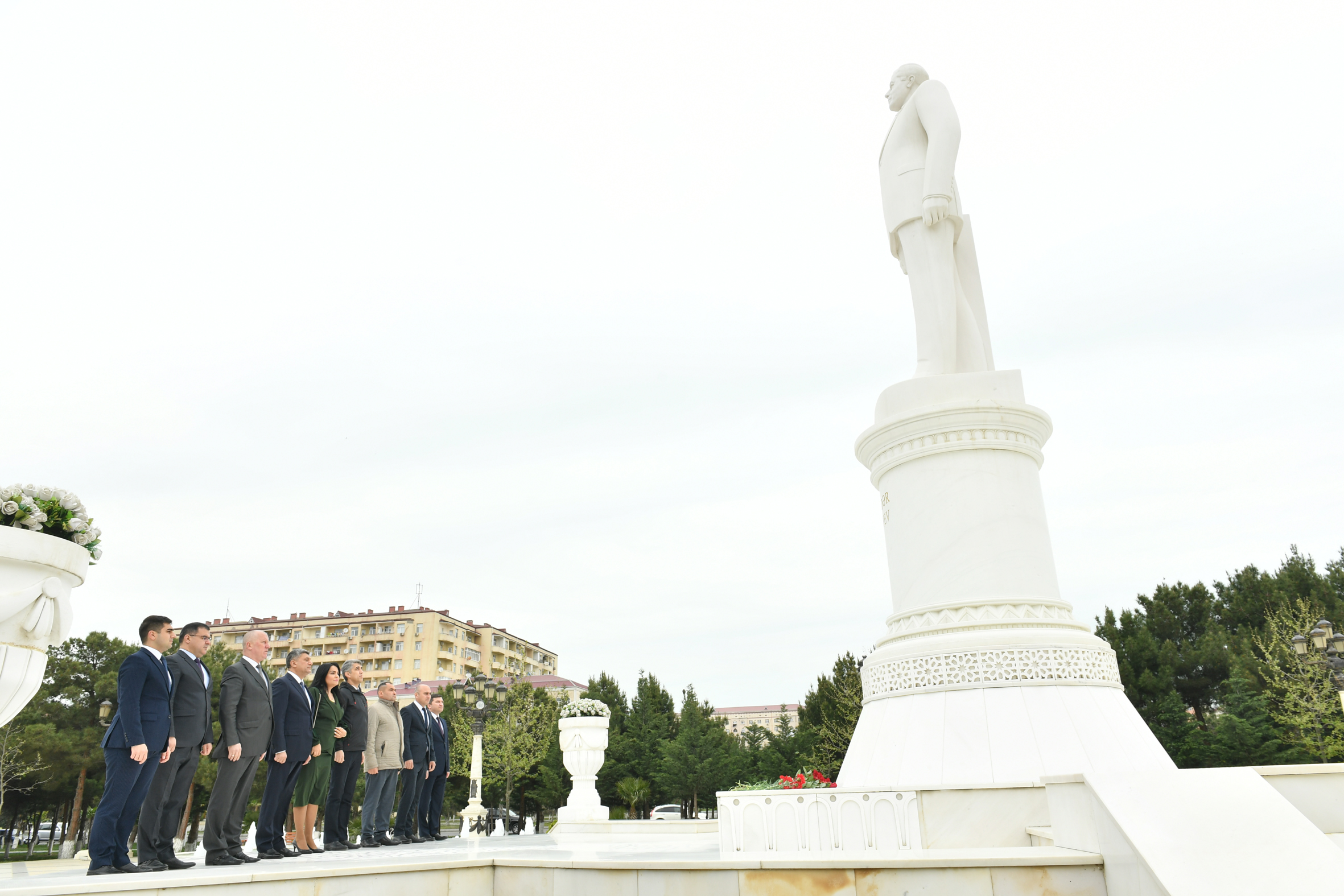 Liderin Sumqayıt şəhərində abidəsi ziyarət olunaraq önünə gül dəstələri qoyulub