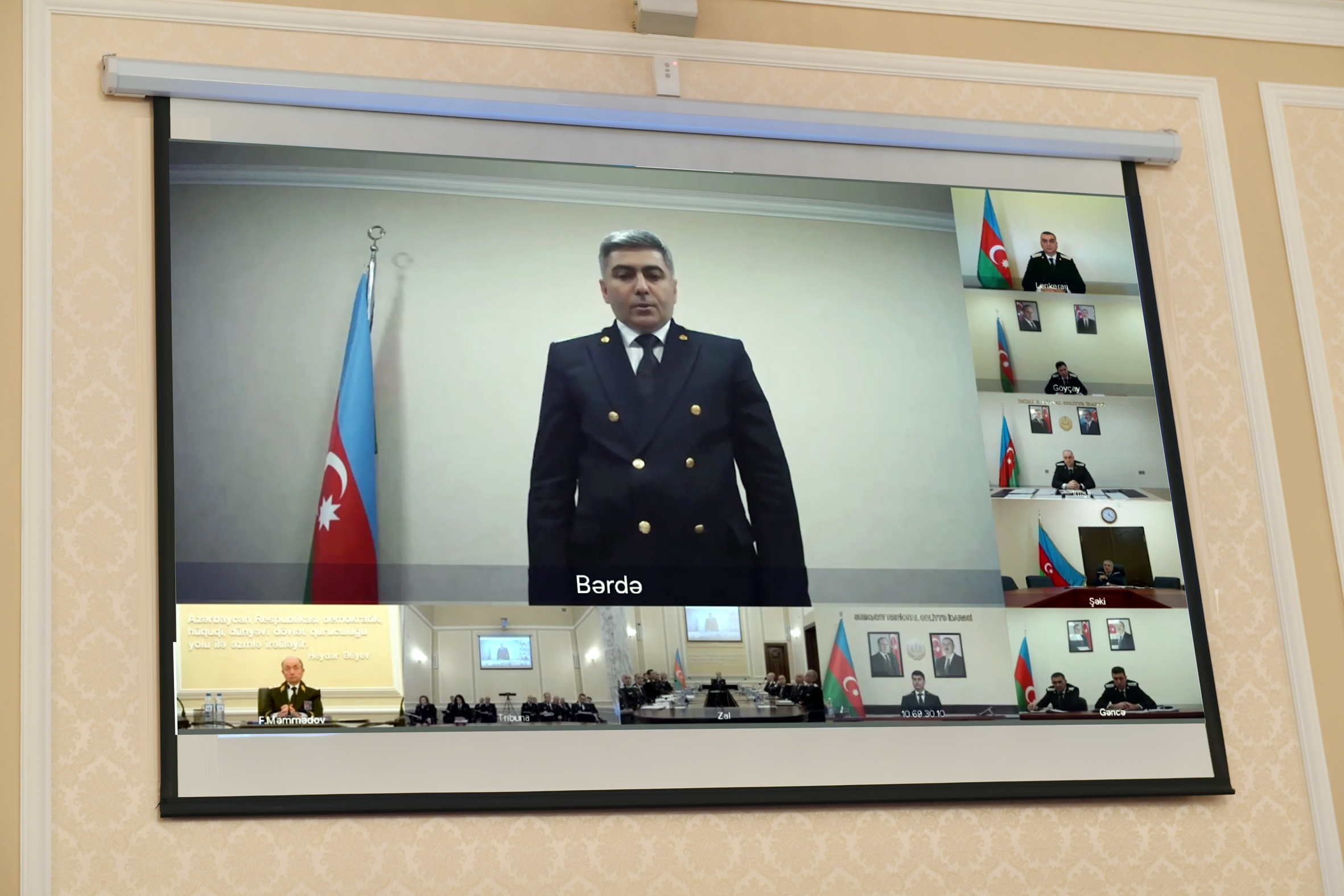 Nazir F.Məmmədov ölkə başçısının 29.09.2022-ci il tarixli Sərəncamı ilə dahi öndərin 100 illiyi münasibətilə 2023-cü ilin “Heydər Əliyev İli” elan olunmasının Ümummilli Liderinin əziz xatirəsinə əbədi ehtiramın təzahürü olduğunu xüsusilə vurğulayıb. Bu münasibətlə nazirlik tərəfindən keçirilən silsilə tədbirləri, o cümlədən gənc ədliyyə işçiləri ilə, bölgələrdə vətəndaşlar və hüquq ictimaiyyəti ilə keçirilən konfrans və “açıq qapı” günlərini, nazirliyin saytında yenicə yaradılmış “Heydər Əliyev və Azərbaycan ədliyyəsi” elektron məlumat platformasını qeyd edib. 2023-cü ildə ədliyyə işçilərinin xidməti vəzifələrinin icrasını layiqincə yerinə yetirmək, Ulu Öndərin yüksək amallarına daim sadiq qalaraq dövlətimizin hərtərəfli tərəqqisi naminə ölkə Prezidentinin ətrafında sıx birləşərək var qüvvələri ilə çalışmaq əzmində olduqlarını vurğulayıb.