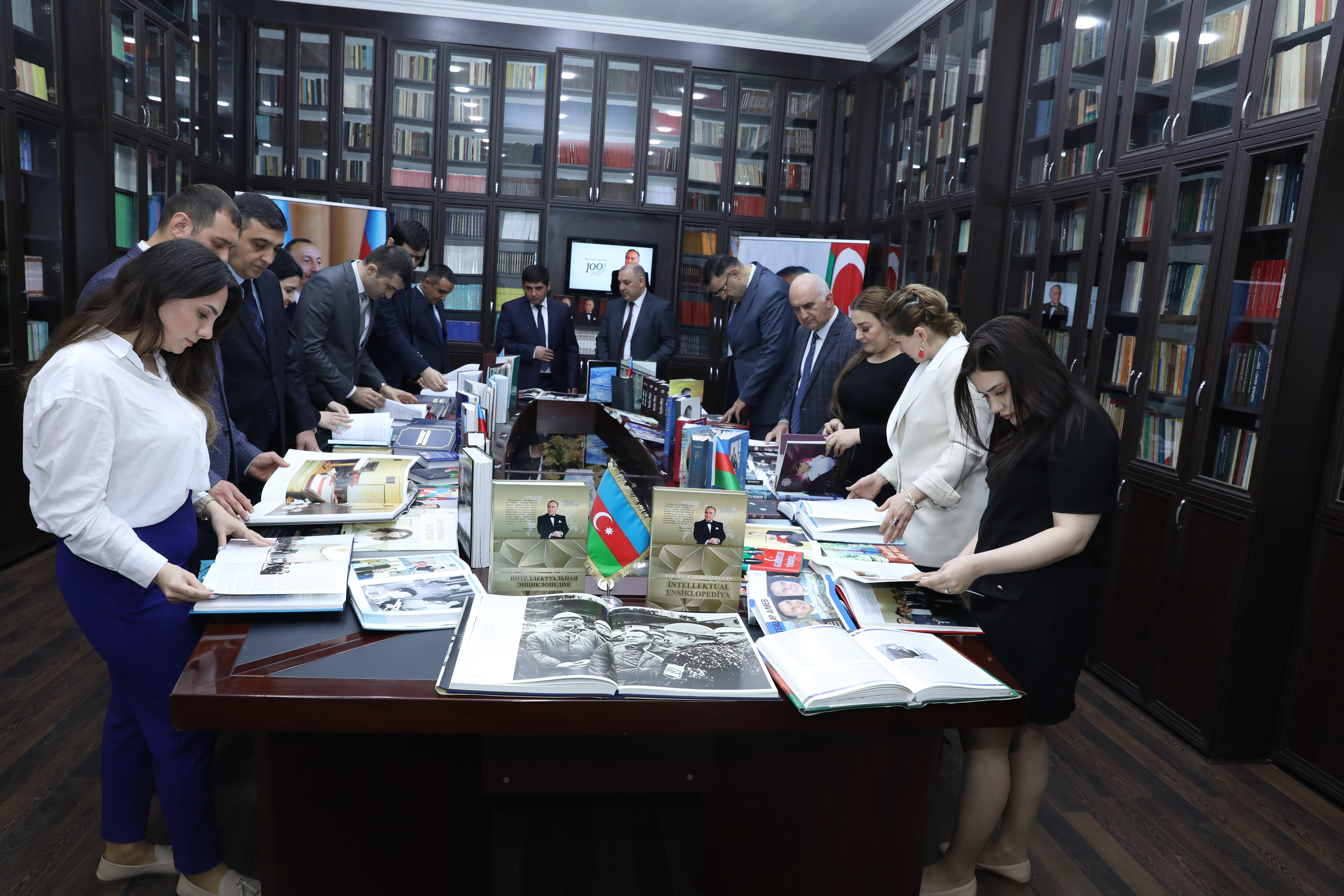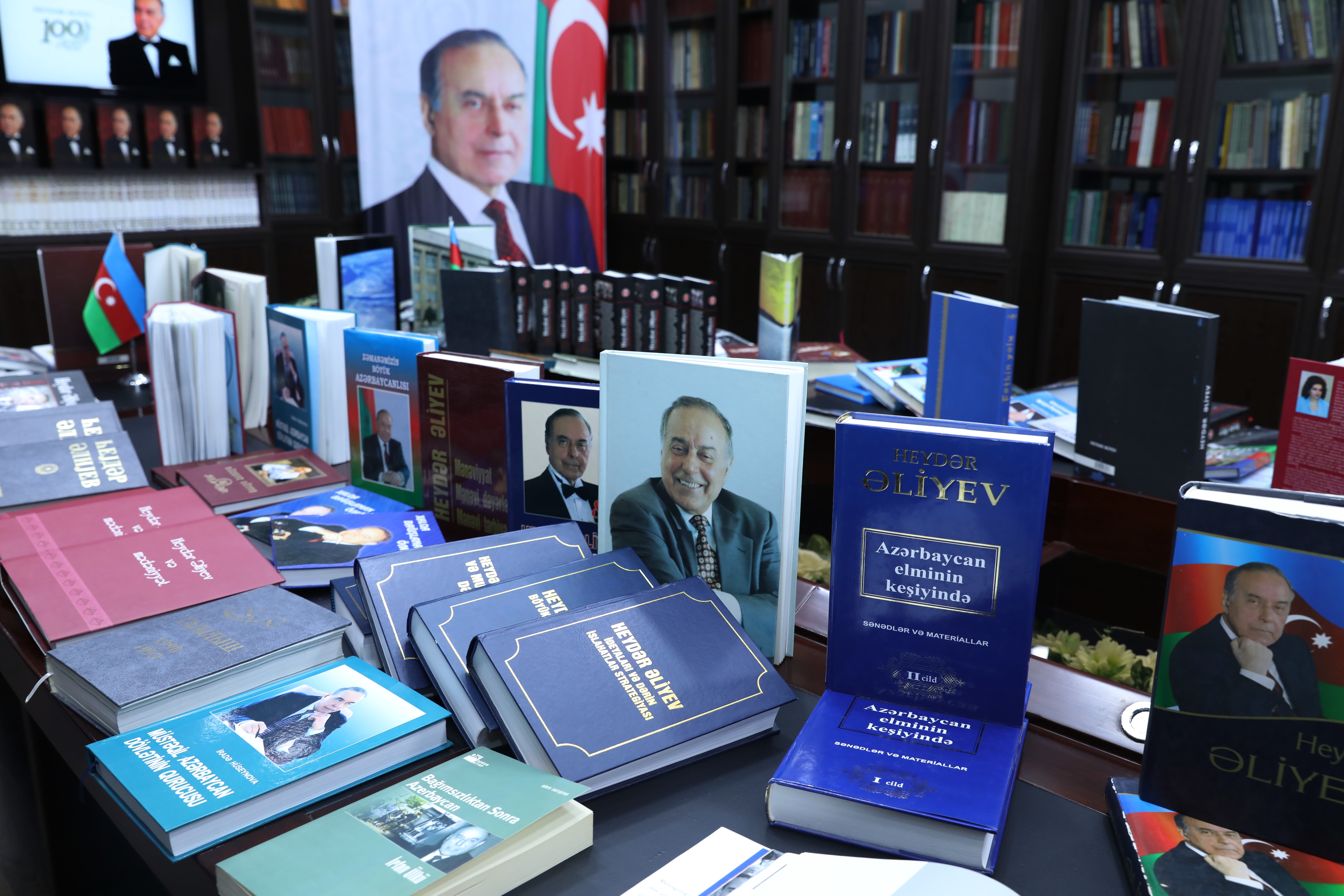 Liderin çoxşaxəli fəaliyyətinə dair kitab sərgisi keçirilib. Sərgidə dahi şəxsiyyətin