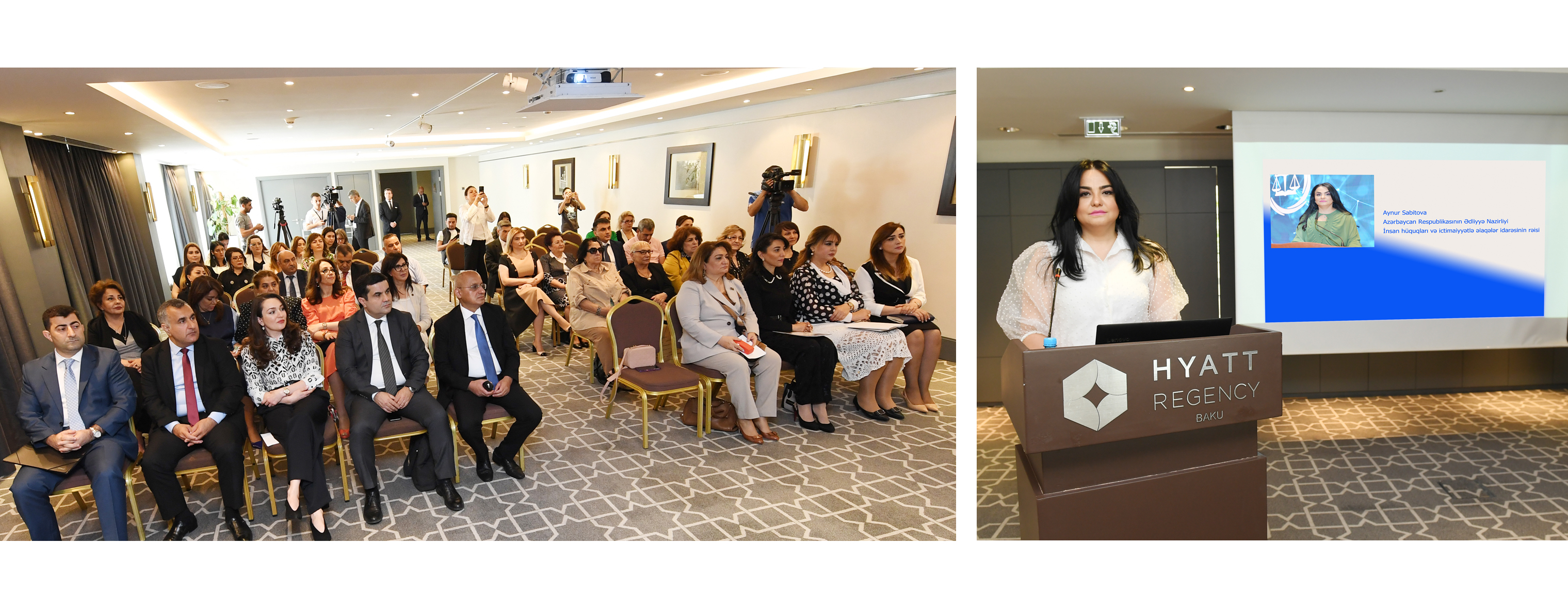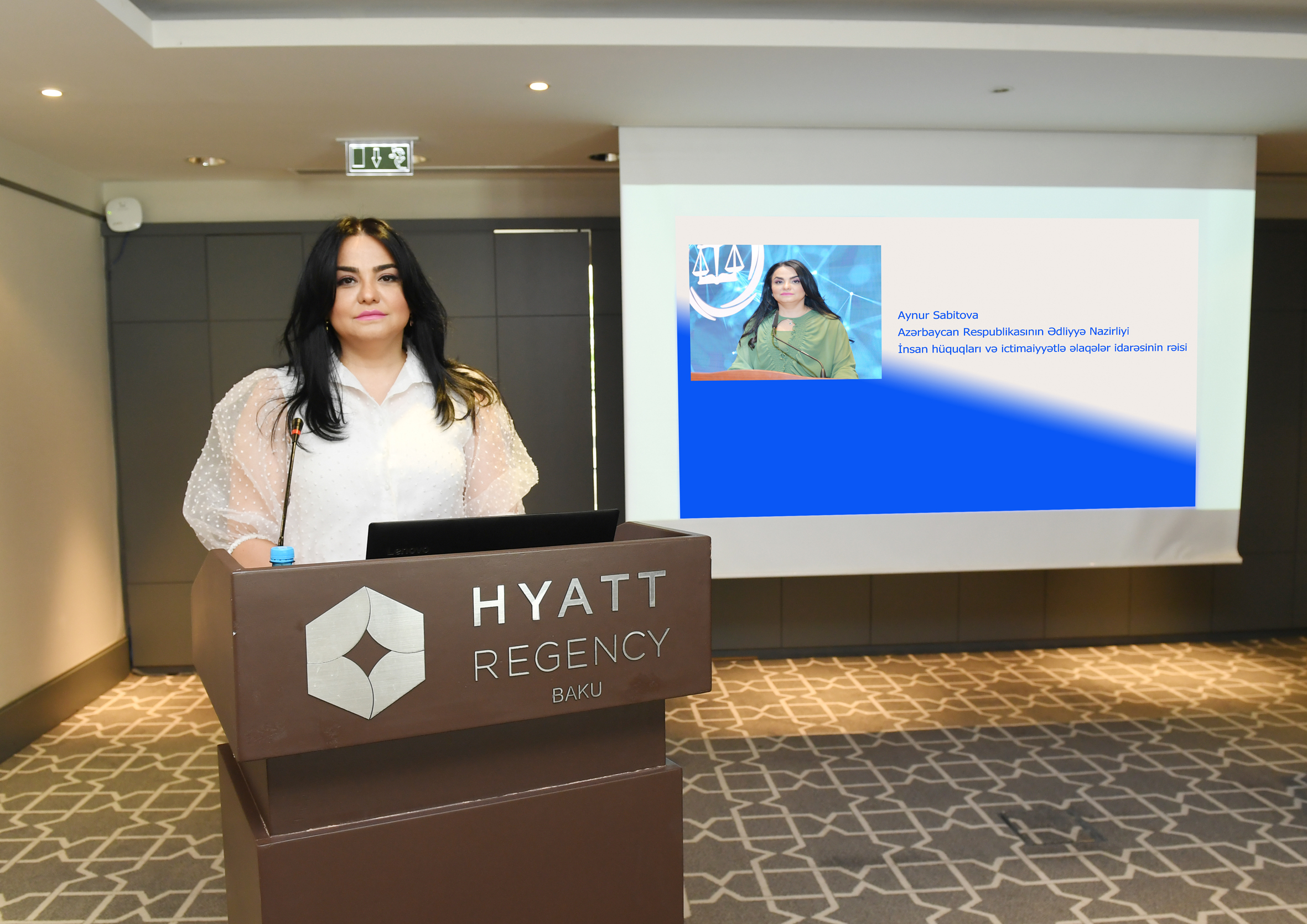 Tədbirdə çıxış edən Ədliyyə Nazirliyi İnsan hüquqları və ictimaiyyətlə əlaqələr idarəsinin rəisi Aynur Sabitova insan hüquq və azadlıqlarının qorunmasının dövlətimizin ali məqsədi olduğunu, bu sahədə ardıcıl və məqsədyönlü addımların atıldığını bildirib. O, qeyd edib ki, 1998-ci il iyunun 18-də ulu öndər Heydər Əliyev tərəfindən ilk fundamental sənəd – Dövlət Proqramı təsdiq olunub. Azərbaycan Prezidenti İlham Əliyevin rəhbərliyi ilə respublikamızda insan hüquqlarının qorunmasına xidmət edən mütərəqqi islahatlar uğurla davam etdirilir. Dövlətimizin başçısının bu sahəyə verdiyi müstəsna əhəmiyyətinin təzahürü olaraq ilk Dövlət Proqramının qəbul olunduğu 18 iyun tarixi ölkəmizdə İnsan Hüquqları Günü elan edilib. Bu münasibətilə elan olunmuş “İnsan hüquqları aylığı” çərçivəsində keçirilən tədbir mühüm əhəmiyyət kəsb edir.