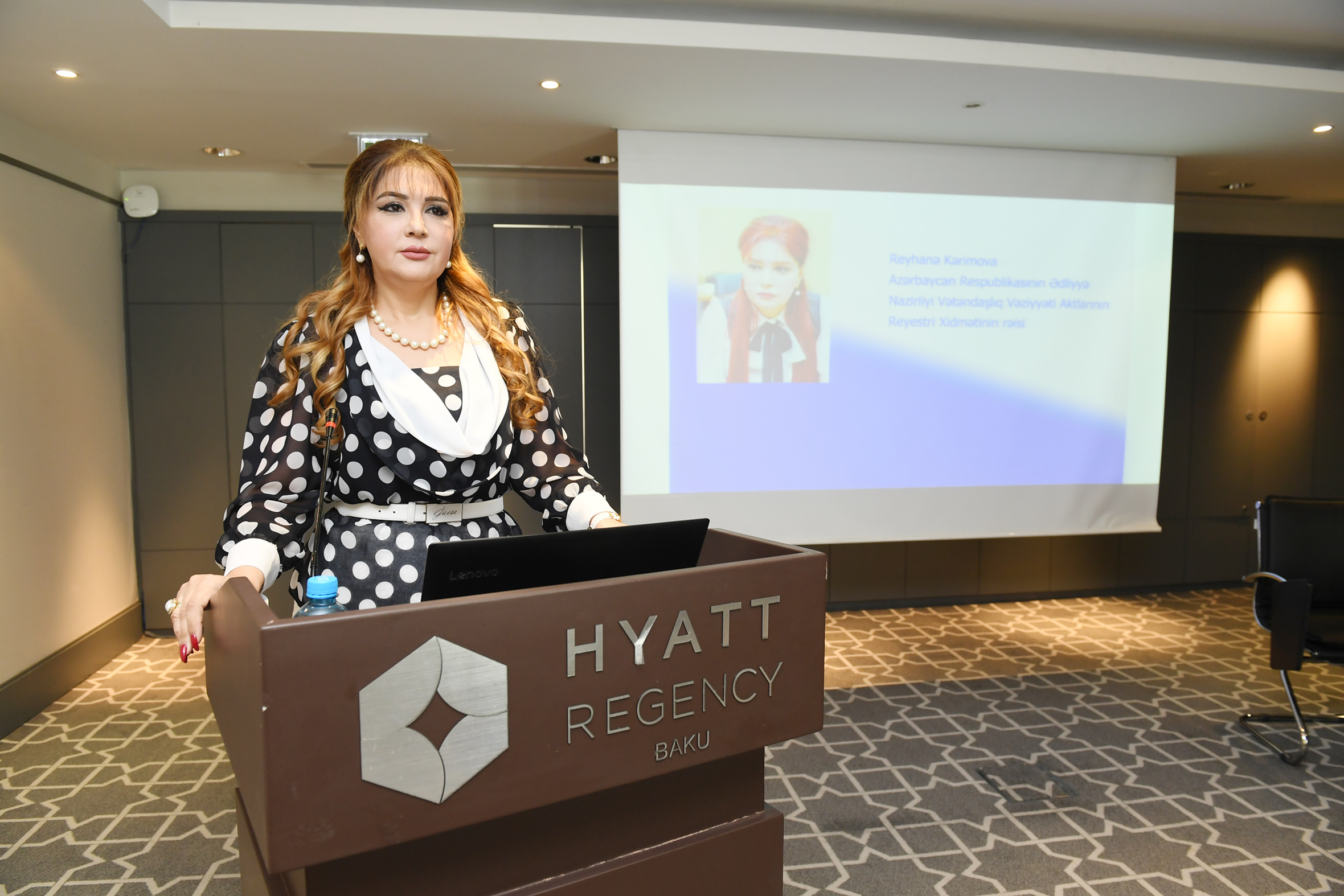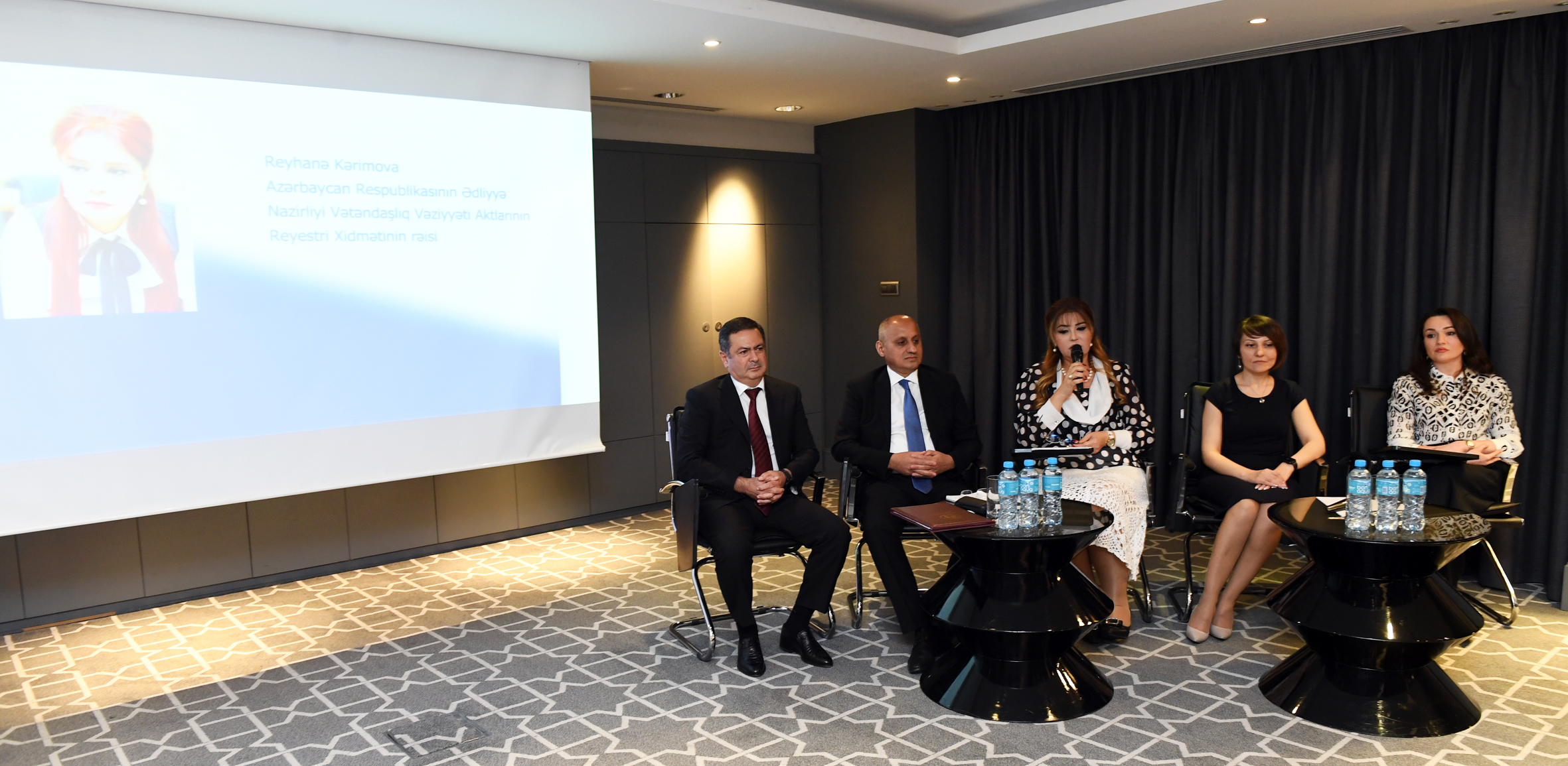 AZƏRTAC xəbər verir ki, tədbirdə Ombudsman, Milli Məclisin, Ədliyyə Nazirliyinin, Vəkillər Kollegiyasının, Mediasiya Şurasının, yerli icra hakimiyyətlərinin rəhbər şəxsləri, hakimlər, qeydiyyat şöbələrinin rəisləri, nazirlik yanında İctimai Şuranın üzvləri, vətəndaş cəmiyyəti və media mənsubları iştirak ediblər.