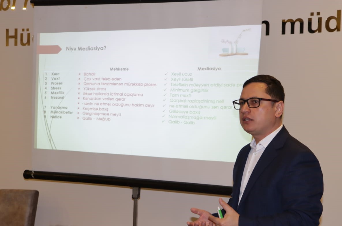 Dəyirmi masada kommersiya məhkəmələrinin fəaliyyət istiqamətləri və ona müraciət qaydaları, kommersiya mübahisələrinə dair işlərə yuxarı instansiya məhkəmələrində baxılmasının xüsusiyyətləri, mübahisələrin məhkəmədən kənar həlli institutu olan mediasiya prosesi ilə bağlı çıxışlar edilib, “Elektron məhkəmə” informasiya sisteminin funksional imkanları, o cümlədən “Şəxsi elektron kabinet” barədə məlumat verilərək əyani təqdimat nümayiş etdirilib.