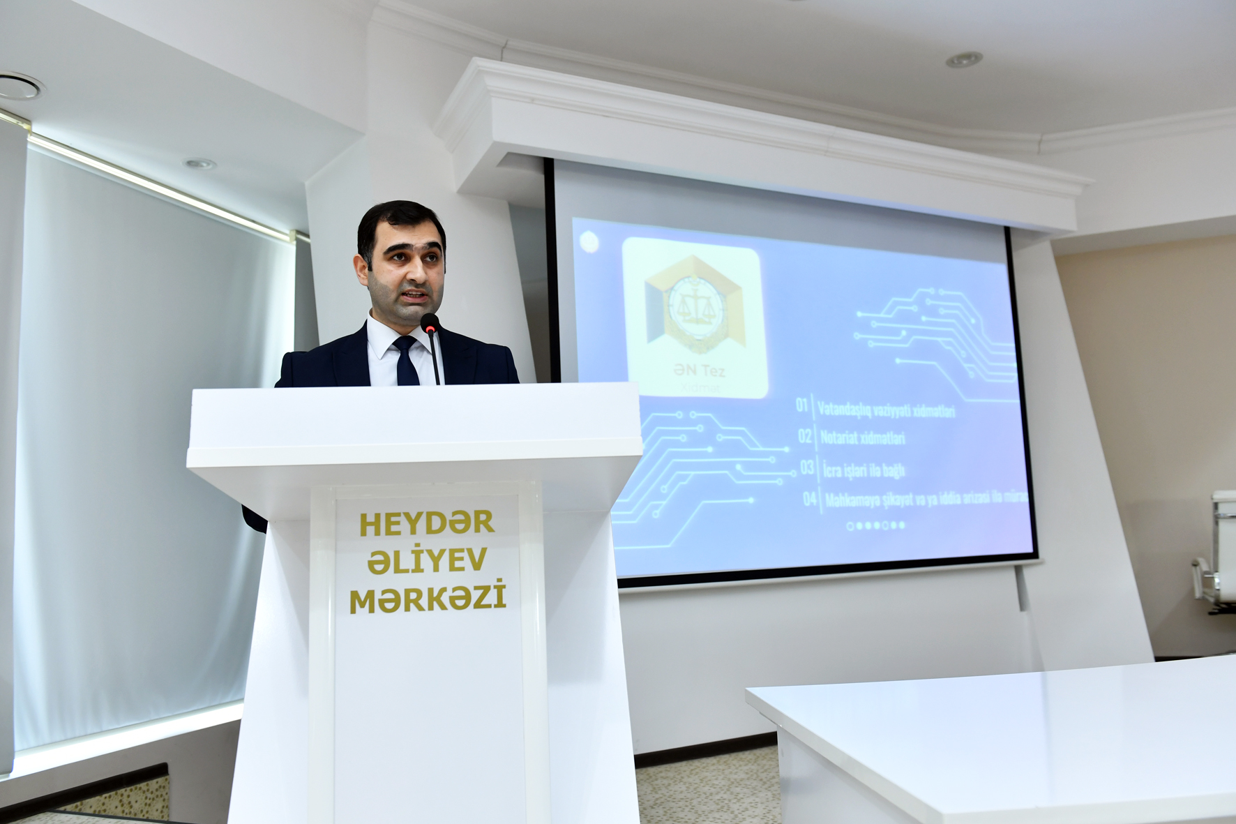 Tədbirlərdə nazirliyin işçiləri tərəfindən ədliyyə sahəsində vətəndaşlara göstərilən hüquqi xidmətlər, o cümlədən insanların rahatlığı üçün tətbiq olunan rəqəmsal innovasiyalar barədə ətraflı məlumat verilib, milli qanunvericiliyin “e-qanun.az” elektron resursunun mobil tətbiqi, “Mobil notariat”, “Mobil əhali”, “Elektron məhkəmə”, “ƏN TEZ” xidmət konsepsiyası ilə bağlı təqdimatlar keçirilərək onların mahiyyəti və ictimai əhəmiyyəti aşılanıb.