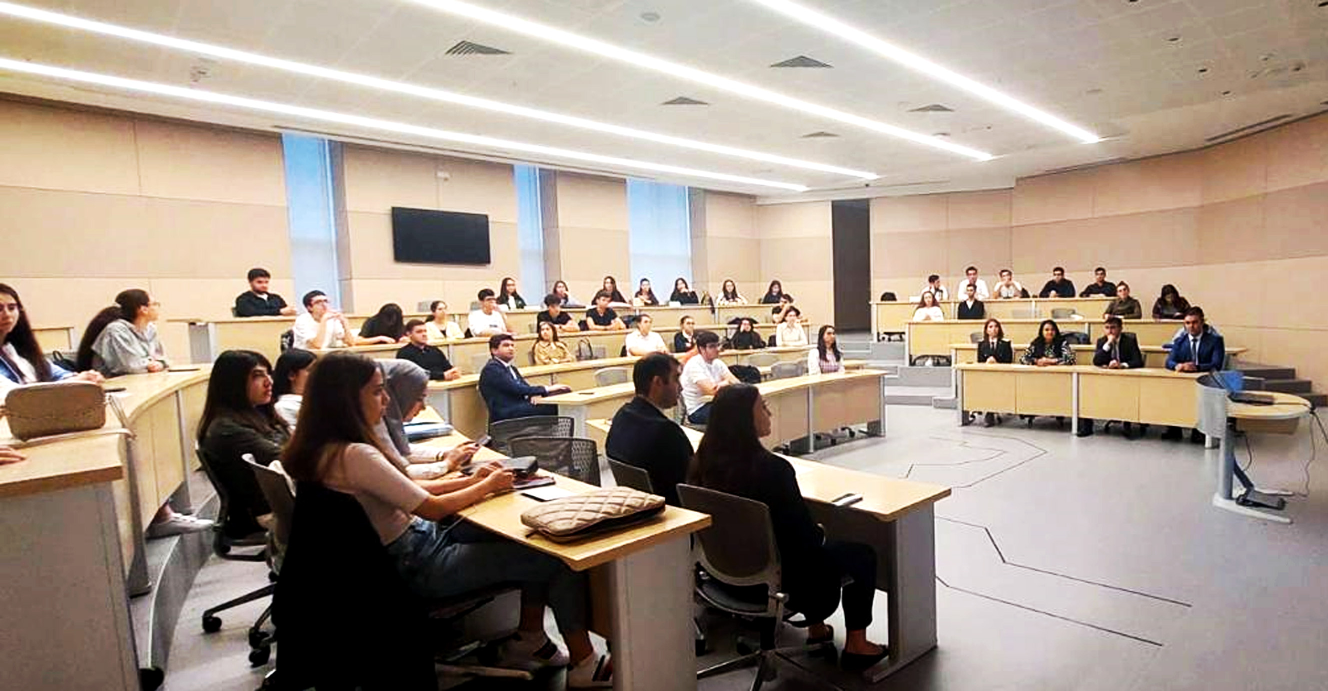 On minlərlə normativ hüquqi aktları özündə ehtiva edən və daim yenilənən “Hüquqi aktların vahid elektron bazası”nın (E-qanun.az) və onun mobil versiyasının mahiyyəti və əhəmiyyəti tələbələrə aşılanıb, funksional imkanları nümayiş etdirilib.