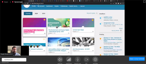 10-11 mart tarixlərində Ədliyyə Akademiyasının Avropa Şurası ilə əməkdaşlığı çərçivəsində Şərq Tərəfdaşlığı ölkələrinin praktiki hüquqşünasları üçün onlayn formada HELP (Hüquqşünasların İnsan Hüquqlarının Tədrisi üzrə Avropa Proqramı) Təlimçilərinin təlimi keçirilib. Təlimdə Avropa Şurasının ekspertləri, həmçinin Şərq Tərəfdaşlığı ölkələrinin hüquq mütəxəssisləri iştirak edib. Avropa Şurasının Məhkəmə və İnsan Hüquqları üzrə Təlim Şöbəsinin direktoru Eva Pastrana, açılış nitqi edərək, HELP Proqramının icmalı, “Şərq Tərəfdaşlığı ölkələrində Avropa İnsan Hüquqları Konvensiyasının tətbiqi” regional layihəsi barədə məlumat verib və təlimin əsas məqsədlərini qeyd edib. Daha sonra, Avropa Şurasının Məhkəmə və İnsan Hüquqları üzrə Təlim Şöbəsinin direktor müavini Ana Medarska-Lazova, “HELP elektron tədris platforması və təlim metodologiyası - HELP necə işləyir?” mövzusunda təqdimat edib. HELP kursunun uyğunlaşdırılmış versiyasını işə salmaq üçün istiqamətləri vurğulayan ekspert, platformada milli adaptasiya və bununla əlaqədar milli tyutoların rolu və təcrübəsindən bəhs edib. Açılış təqdimatlarından sonra, “dəyirmi masa” sessiyasında Şərq Tərəfdaşlığı ölkələrindən təlimə cəlb olunan iştirakçılar, qısa təqdimatlar edərək, təlimdən gözləntilərini ifadə ediblər. Avropa Şurasının Ədliyyə və İnsan Hüquqları üzrə Təlim Şöbəsinin Layihə meneceri Duqlas Maksvell, HELP platformasında kurs səhifəsinin, bölmələrin (modulların) yaradılması, səhifənin strukturlaşdırılması, materialların, resursların yüklənməsi və səhifəyə məzmunun əlavə edilməsi kimi HELP e-tədris alətlərindən bəhs edib. Daha sonra, Forumun yaradılması, istifadəsi, tapşırıqların və testin yaradılması, iştirakçıların kursa qeydiyyatı ətrafında müzakirələr aparılıb. Təlimin ikinci günündə ekspert Duqlas Maksvell, iştirakçılarla platforma vasitəsilə ünsiyyət, tərəqqini izləmək, fəaliyyətə nəzarət etmək və iştirakçıların qiymətləndirilməsi HELP alətləri üzrə öyrənmə fəaliyyətlərini nümayiş etdirib. Seçilmiş bəzi kursların təqdimatı ilə çıxış edən ekspertlər Eva Massa, Ana Medarska-Lazova və Ana-Mariya Telbis, “Hakimlər, prokurorlar və vəkillər üçün etika”, “Məhkəmə qərarlarının əsaslandırılması və insan hüquqları” və “Cinayət İşləri üzrə Beynəlxalq Əməkdaşlıq” HELP kursları barədə məlumat veriblər. Təlimin yekununda ekspertlər iştirakçılara tytorluq sertifikatını əldə etmək üçün addımları qeyd ediblər və milli tyutorun platforma üzərindən rolunun nədən ibarət olacağı barədə təlimatlar veriblər.