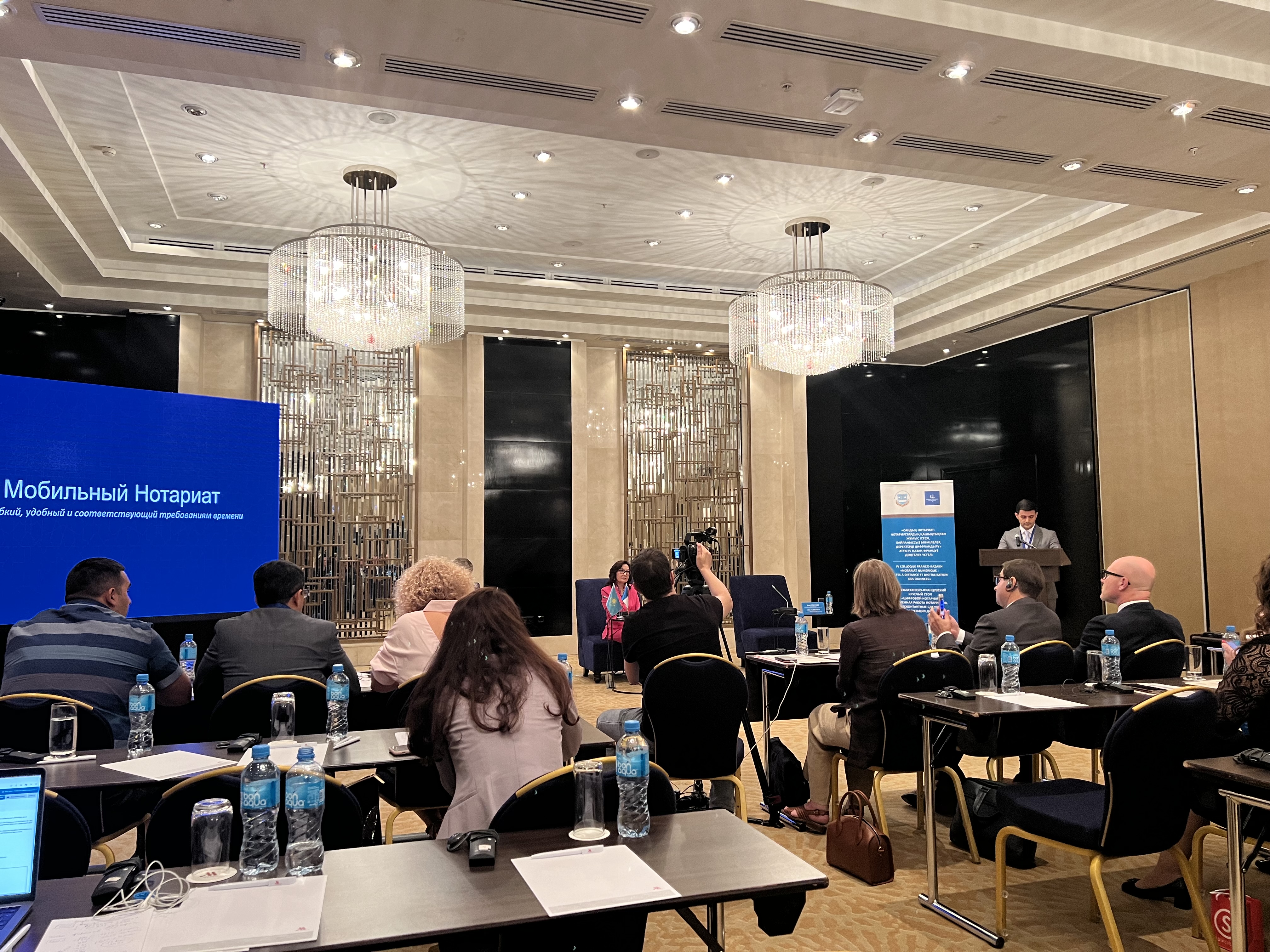 “Rəqəmsal notariat: notariusların məsafədən işi, təmassız əqdlər, məlumatların rəqəmsallaşdırılması”, “İcra qeydi. Prosedurlar və qaydalar” və “Yeni reallıq şəraitində notariatın müasir çağırışları və inkişafı” mövzusunda II Mərkəzi Asiya Beynəlxalq notariat konfranslarında nümayəndə heyətimiz rəqəmsal notariatın yeniliyi olan “Mobil notariat” tətbiqi, Azərbaycanda icra qeydlərinin aparılması prosedurunun avtomatlaşdırılması, müasir notariatın inkişaf aspektləri, bu sahədə Azərbaycan təcrübəsi barədə təqdimatlarla çıxış edib.