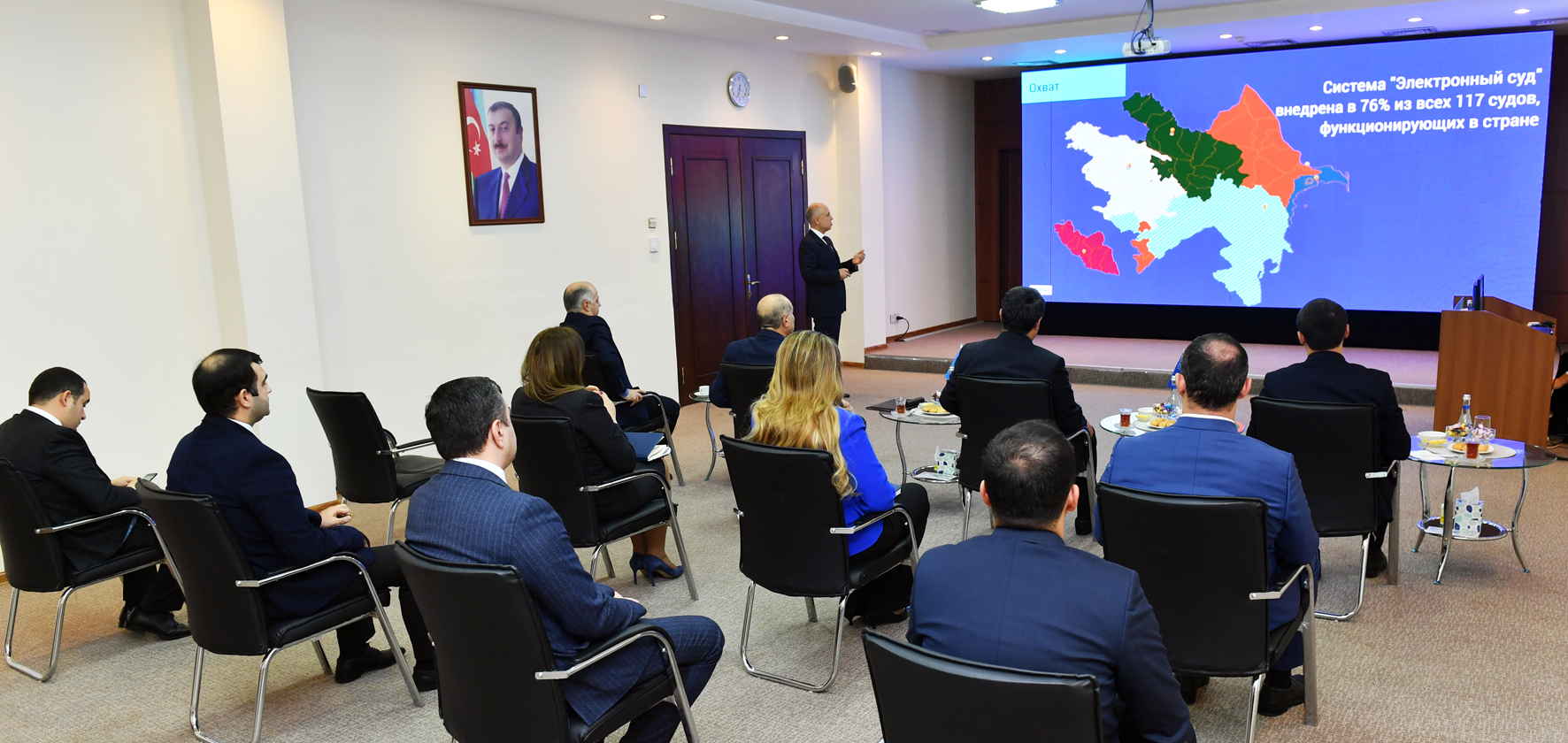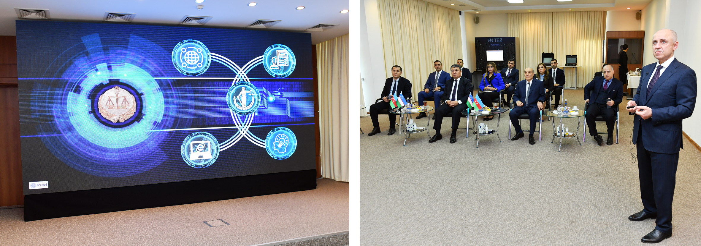 Həmin gün qonaqlar üçün nazirliyin innovativ fəaliyyətinə, o cümlədən elektron informasiya resurslarına və aparılan reyestrlərə, mobil ədliyyə xidmətlərinə dair geniş təqdimat təşkil olunub. Nazir A.Taşkulov rəqəmsal ədliyyə yeniliklərini maraqla qarşılayaraq təqdir edib, ölkəmizin bu sahədə təcrübəsindən yararlanmaq barədə niyyətini bildirib.