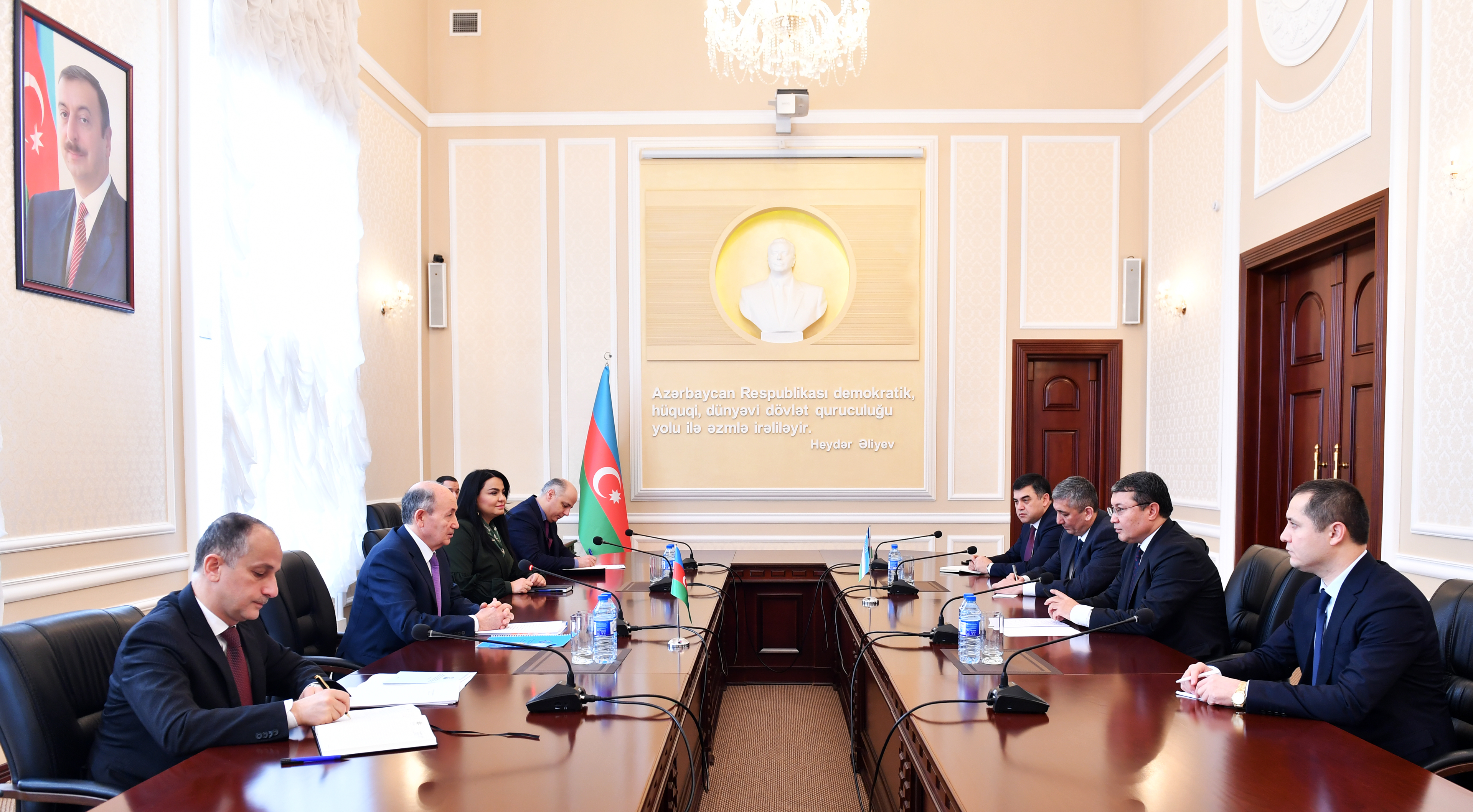Ölkələrimiz arasında tarixi köklərə malik əlaqələrimizin inkişafında xalqımızın ümummilli lideri Heydər Əliyevin müstəsna xidmətlərini qeyd edən nazir F.Məmmədov dahi öndərin xatirəsinə dərin ehtiram əlaməti olaraq 2023-cü ilin Ulu Öndərin anadan olmasının 100 illiyi münasibətilə “Heydər Əliyev İli” elan olunmasından bəhs edib, Ümummilli Liderin 1997-ci ildə Daşkəndə səfəri zamanı Özbəkistan və Azərbaycan Ədliyyə nazirlikləri arasında əməkdaşlıq haqqında Saziş imzalanaraq hüquqi əməkdaşlığımızın inkişafına təkan verildiyini xatırladıb.