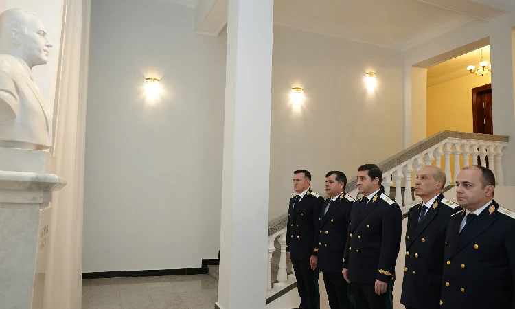 Anım mərasimi daha sonra Nazirliyin inzibati binasında davam etdirilib. Ümummilli Liderin büstü önünə tər güllər qoyulub, xatirəsi ehtiramla anılıb.