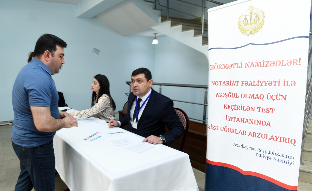 Ədliyyə Nazirliyinin Mətbuat xidməti bildirir ki, bəzi bölgələrdə notariat fəaliyyəti ilə məşğul olmaq istəyən namizədlərlə elan olunmuş müsabiqə üzrə may ayının 24-də növbəti test imtahanı keçirilib.