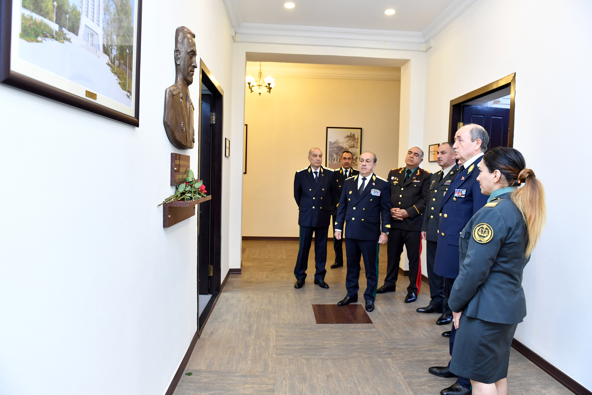 Əvvəlcə ümummilli lider Heydər Əliyevin nazirlikdəki büstü önünə gül dəstələri qoyularaq əziz xatirəsi dərin ehtiramla yad edilib. Zəfər muzeyinin qarşısında şəhid ədliyyə işçisi R.Xəlilovun barelyefinin açılışı olub.